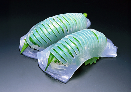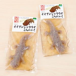 「オオサンショウウオこんにゃく」湯来南高校の「湯来町温泉同好会」生徒から「オオサンショウウオの形をしたこんにゃくを作れませんか?」という提案がきっかけで、開発が始まりました。試作を重ね、SNS投稿を機に全国的に話題となりました。