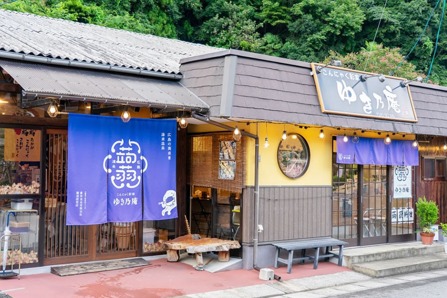 フジトシが運営する直売所「ゆき乃庵」。湯来の天然地下水から生まれたこんにゃくの「うまい」を表現し、新しい食べ方を提案する食事処です。地元にお住いの方々から観光客の皆様まで、幅広いお客様にご利用いただいています。